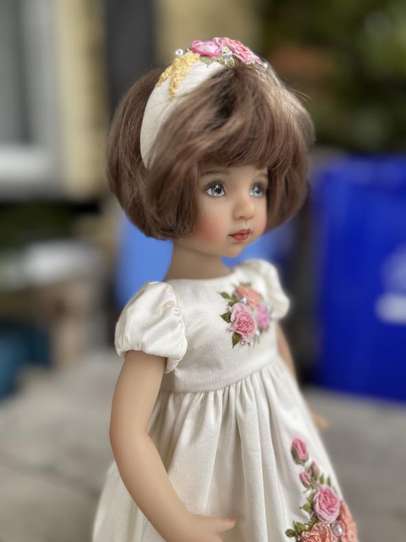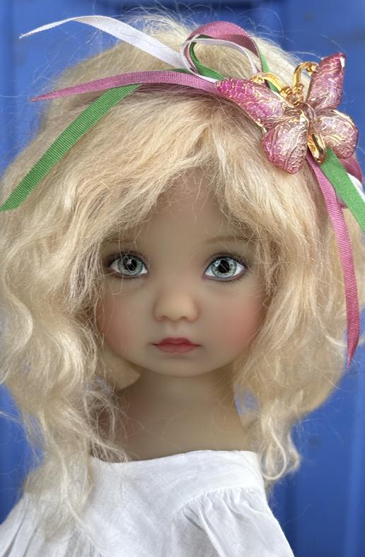 I would like to once again offer Anna. A Tuesday’s child repaint of Ana that was offered in 2022 by Boneka at the MDCC convention (a companion to Pippi Longstocking) she has beautiful, clear blue eyes and a sweet complexion that would look good with any hair colour even though she is currently wearing a gorgeous and soft mohair wig with a coronet of flowers and beads. . Anna also comes with her complete original outfit as shown in the last photo which is a file photo.