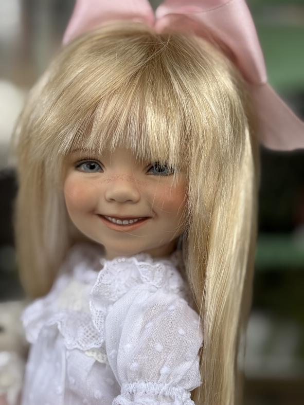 Lydia is a Li’l Dreamer #1. She has big hazel green eyes, delicate, brows and lashes and a pretty mouth. Blushed in all the right spots and features a light mani/pedi.