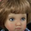 Please say hello to Ellie. She is a little darling number five in dark skin tone. She has sparkling blue eyes, delicate, brows and lashes and a soft rosy mouth. Her high complexion has a scattering of little summertime freckles across her cute nose. Ellie’s sun bleached wavy hair was created by Tonja King.